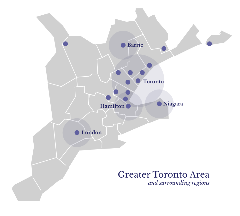 We proudly provide our services across Toronto, the Greater Toronto Area (GTA) and surrounding communities.
